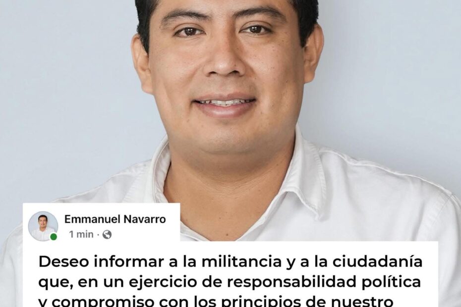 Mediante un comunicado difundido en sus plataformas oficiales, Emmanuel Navarro dio a conocer este martes 17 de febrero su decisión de separarse de manera definitiva del cargo de presidente del Comité Ejecutivo Estatal (CEE) de Morena en Oaxaca.