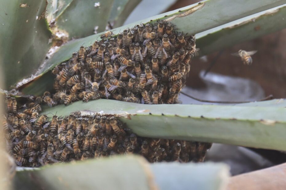 Al estar en la maceta, las abejas se mantenían intranquilas, por lo que los locatarios llamaron a las autoridades para que les apoyaran y se evitara un desencuentro con las personas que pasaban por el lugar.