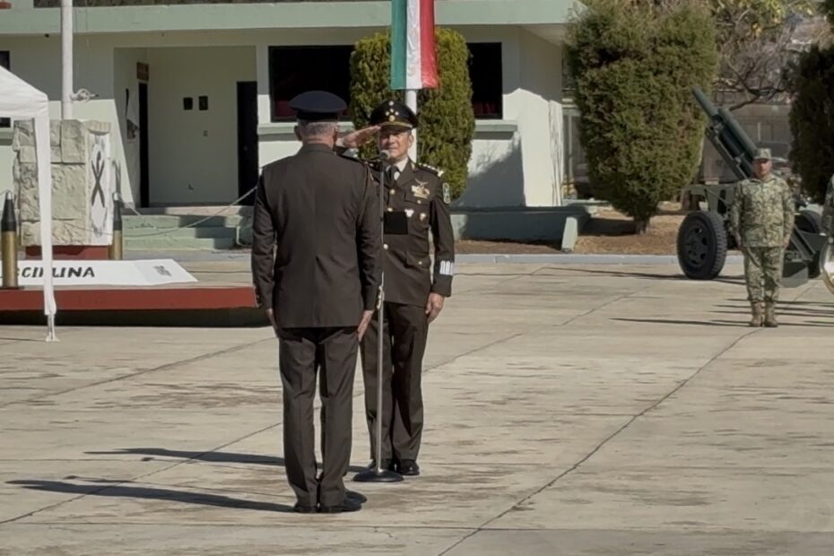 El comandante Francisco José Leana Ojeda le tomó protesta, además, le dio posesión al cargo como lo mandan los protocolos militares, y antes, se leyó su curriculum de su carrera en las Fuerzas Armadas.