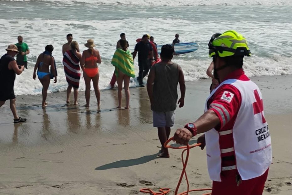 Al menos siete turistas extranjeros estuvieron a punto de ahogarse en la playa La Bocana, en Bahías de Huatulco, en la región de la Costa de Oaxaca, al no atender la alerta que se tiene por evento de Mar de Fondo.
