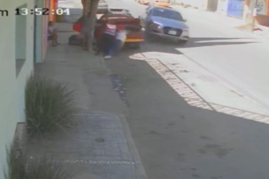 De repente, apareció un automóvil marca Audi modelo A3 color gris en contra sentido, el cual de repente modificó un poco su ruta y golpeó con la esquina de la unidad el otro vehículo, provocando que dos personas que estaban detrás fueran impactadas.