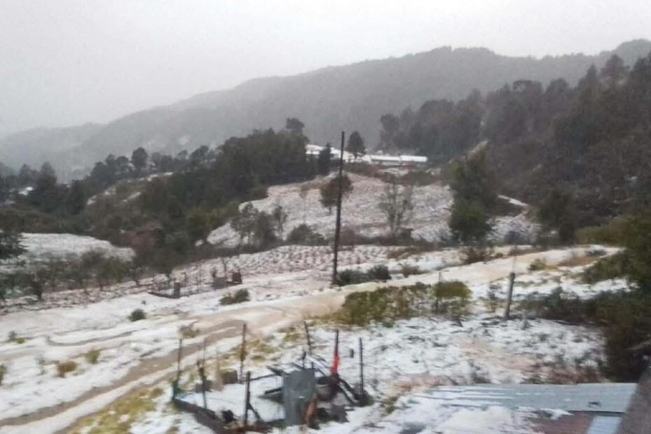 Vía redes sociales, los habitantes reportaron que la lluvia y la granizada fueron intensas, y rápidamente cubrieron los campos de blanco debido al hielo que cayó.