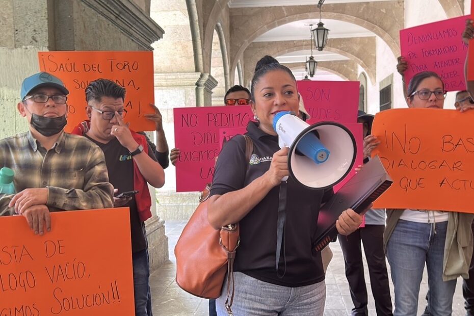Tras una breve protesta en el zócalo de la ciudad, las y los trabajadores se retiraron en espera de recibir atención oportuna y con soluciones concretas.