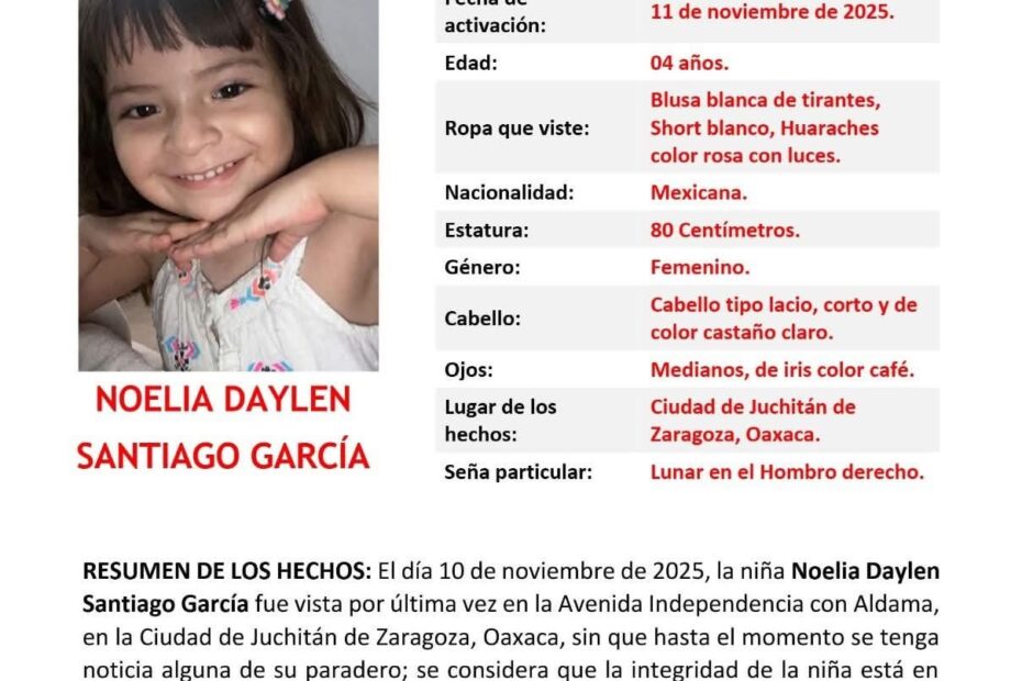 Tras activarse la Alerta Amber Oaxaca 43/ALERTA-DNOL/2025, se puso en marcha el operativo en las inmediaciones de la ciudad de Juchitán de Zaragoza y más tarde se localizó el cuerpo de la menor en una vivienda ubicada en la colonia La Planta, cercana donde se dio el hecho violento.