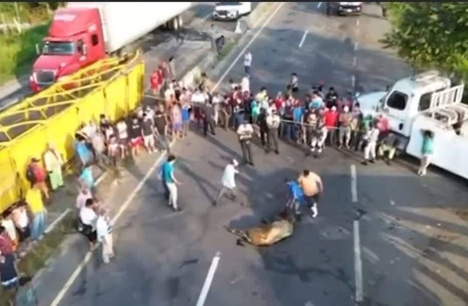 Un tráiler que trasladaba ganado sufrió un aparatoso accidente luego de impactar y derribar un puente peatonal sobre la carretera Villahermosa–Escárcega, lo que provocó afectaciones viales y la movilización de personas en la zona.