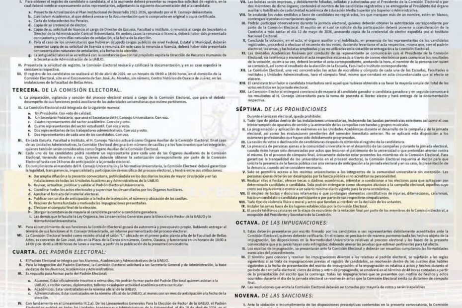 La Universidad Autónoma “Benito Juárez” de Oaxaca (UABJO) lanzo este martes la convocatoria oficial para el proceso de elección de Rectoría para el periodo 2026–2030,