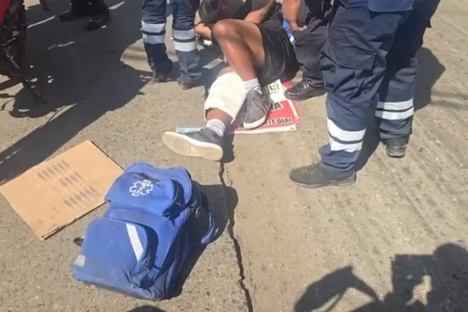 El hecho ocurrió luego que el chofer de la motocicleta casi impacta con una persona que atraviesa la vialidad, por lo que al trata de esquivarla y evitar el impacto cayó de la motocicleta y sufrió una lesión en su rodilla derecha.