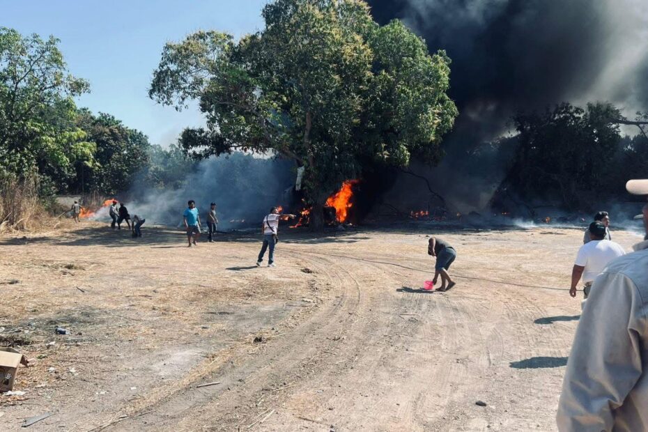 Se informó que el chofer pudo ponerse a salvo, e iniciaron las labores de apoyo vecinos del lugar para que el fuego no se extendiera hacia viviendas y se pusieran en riesgo las vidas de los habitantes.