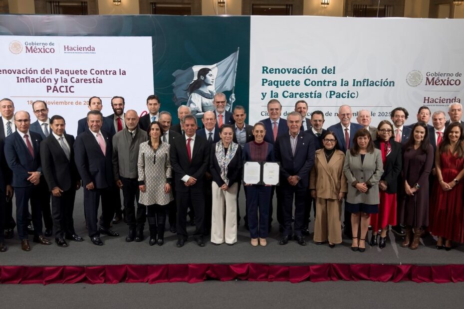 La Presidenta de México Claudia Sheinbaum Pardo firmó, con tiendas de autoservicio y agroindustrias, la renovación del Paquete Contra la Inflación y la Carestía (Pacic), que mantiene en 910 pesos el precio de los 24 productos de la canasta básica, es decir, no aumenta su precio y con ello se cuida la economía popular.