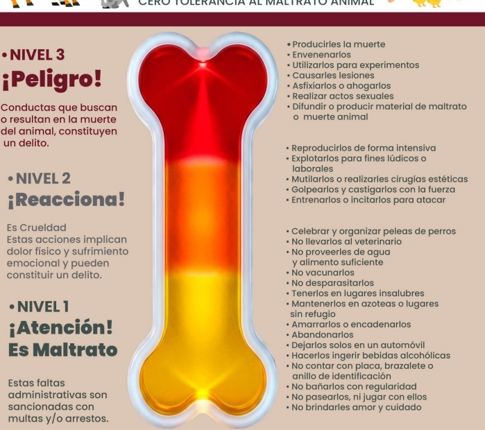 Detalló que la escala contempla distintos niveles de violencia, entre las que destacó prácticas como mantener a mascotas en azoteas en condiciones inadecuadas, la organización de peleas clandestinas y actos extremos que derivan en la muerte de seres sintientes.