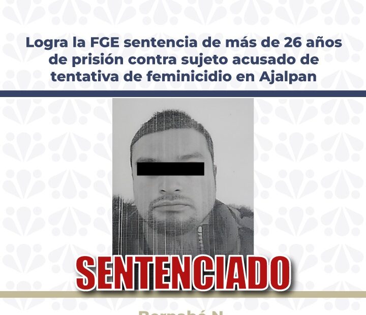 Como resultado de los argumentos presentados por la Fiscalía General del Estado de Puebla, se logró una sentencia de 26 años, 8 meses de prisión contra Bernabé N., acusado de feminicidio en grado de tentativa, ocurrido en Ajalpan.