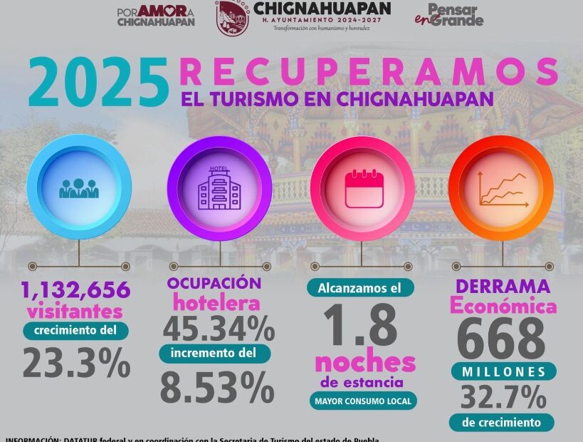 “Estos resultados son fruto de la planeación, la promoción estratégica y el trabajo coordinado. Seguiremos impulsando acciones que fortalezcan nuestra economía y proyecten a Chignahuapan como un destino competitivo y en constante crecimiento”, señaló.