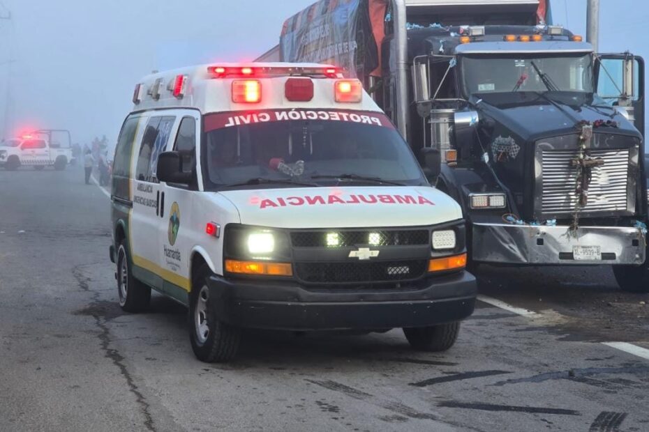 Un tráiler y un camión con peregrinos poblanos chocaron en la Carretera México–Veracruz a la altura de Huamantla, Tlaxcala la mañana de este viernes.