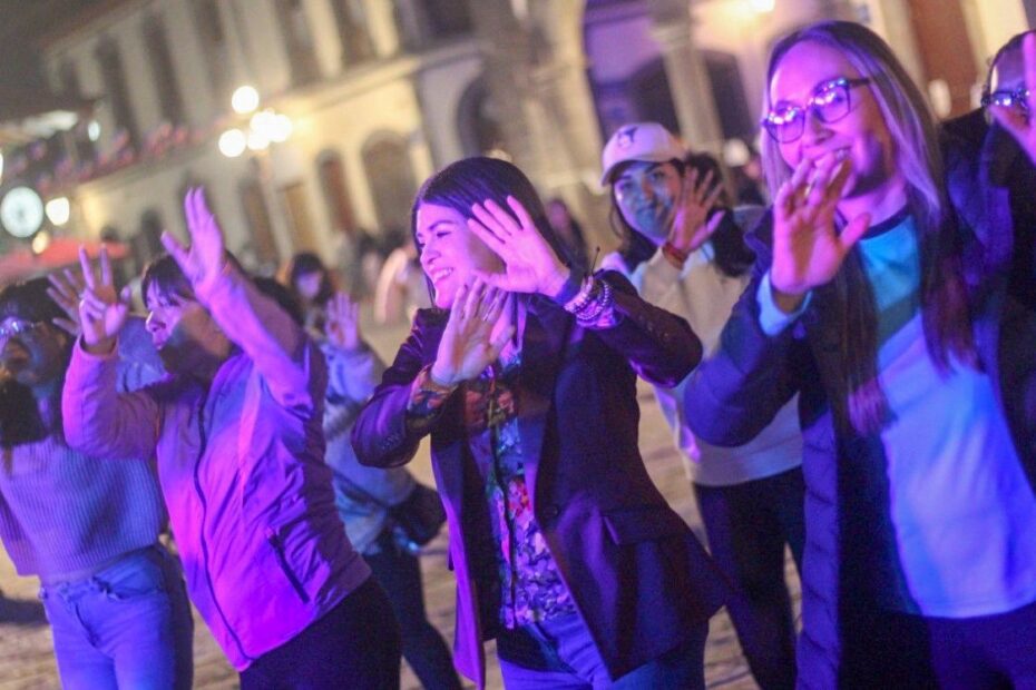 La noche inició con una masterclass de zumba acompañada de un di, de luces, buen ritmo y el mejor de los ambientes. Incluso, las turistas y mujeres que estaban en el zócalo de Zacatlán, se unieron a esta actividad. A esta actividad se incorporó la presidenta municipal, Bety Sánchez.