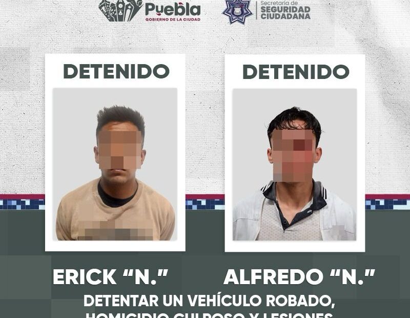 A través de un despliegue territorial, Policías de la Ciudad detuvieron a Alfredo “N.”, de 24 años de edad y Erick “N.”, de 23 años de edad, ya que conducían una unidad que habría sido reportada como robada, por lo que pretendían huir. Sin embargo, durante su trayecto lesionaron a una ciudadana, quien perdió la vida en el sitio. Por lo anterior fueron asegurados y quedaron a disposición de la autoridad correspondiente.