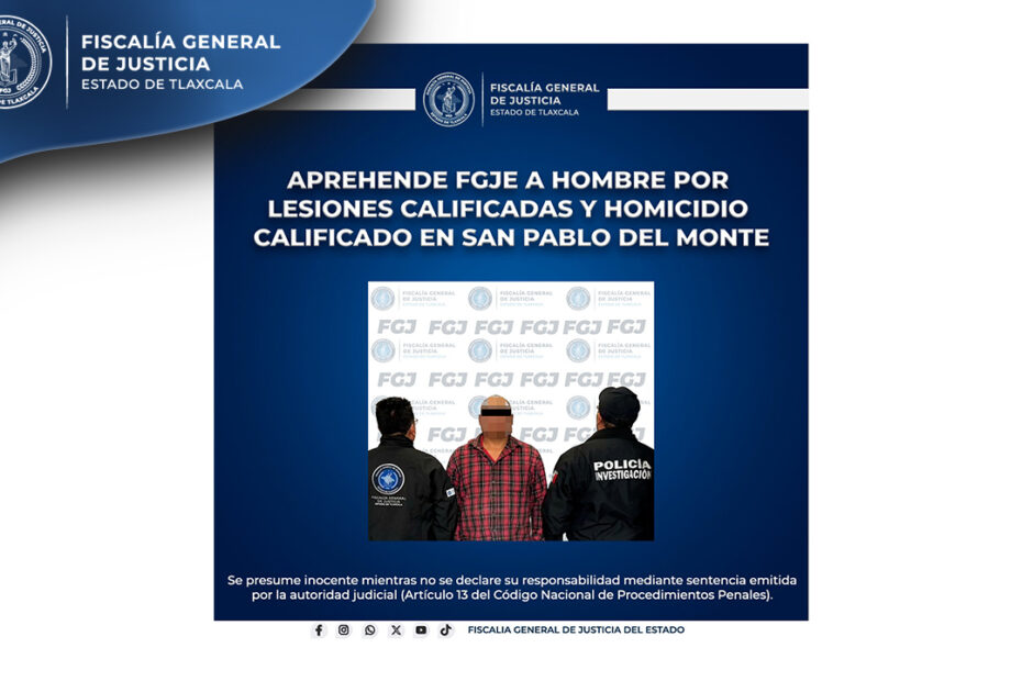 Derivado de los trabajos de inteligencia, la Policía de Investigación de la Fiscalía General de Justicia del Estado (FGJE) aprehendió a Miguel N., por los delitos de lesiones calificadas y homicidio calificado.