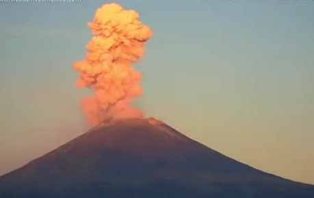 Su actividad ofreció una bella postal en medio del amanecer frío, mientras durante varias horas el coloso emitió una ligera columna de vapor de agua y ceniza con dirección al sur de la entidad.