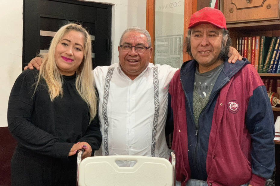 El presidente municipal de Amozoc, Puebla, Severiano de la Rosa Romero entregó una silla de ruedas dentro de casa colorada, donde además atendió personalmente a la ciudadanía que se acercó con alguna necesidad.