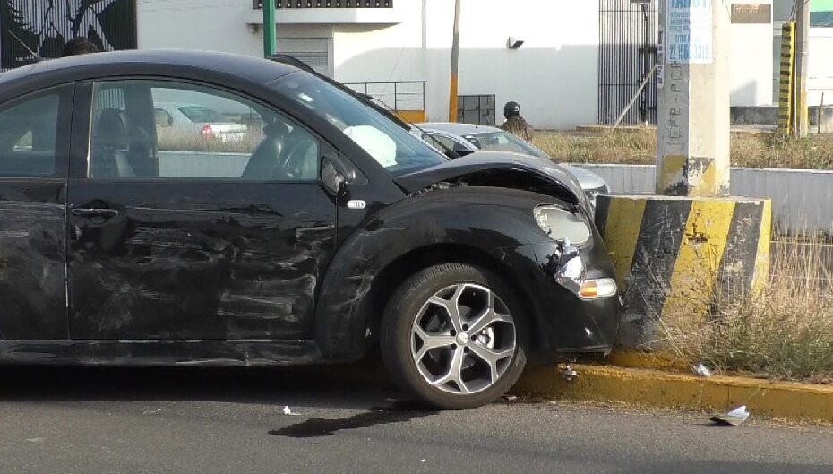 Un vehículo particular, tipo Beetle color negro, terminó impactado contra un poste sobre la lateral de la recta a cholula, a la altura del centro nocturno Foxies, con sentido a la ciudad de Puebla.
