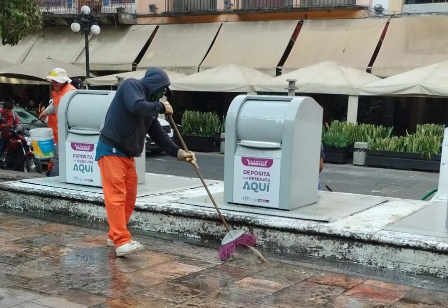 Como parte de las acciones permanentes del alcalde Pepe Chedraui para fortalecer la limpieza y el mantenimiento de los espacios públicos, el Organismo Operador del Servicio de Limpia (OOSL) realizó trabajos de lavado y sanitización de papeleros y soterrados en el Centro Histórico.