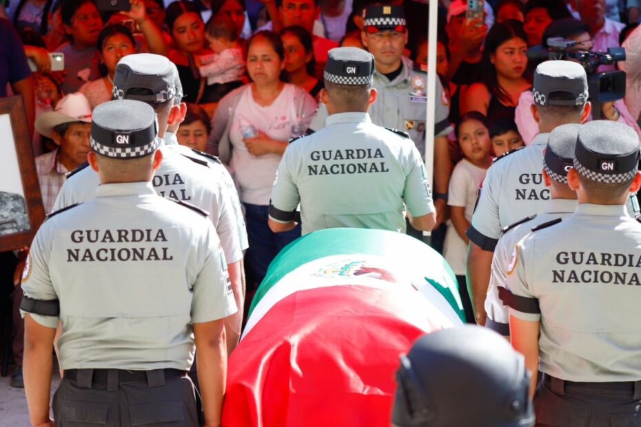Con el fin de reconocer su entrega a México, elementos de la Guardia Nacional despidieron con honores al sargento segundo Juan Vázquez García, quien murió en cumplimiento de su deber durante el operativo que se llevó a cabo en el estado de Jalisco.