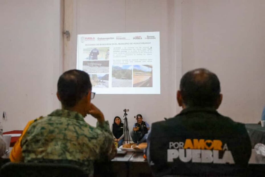Durante este encuentro, el funcionario estatal informó que la búsqueda de las dos personas que aún no han sido localizadas, no se suspenderá y por el contrario, continuarán las tareas por tierra, aire y en los afluentes de ríos, con operativos que realiza personal de Protección Civil estatal, Comisión de Búsqueda de Personas de Puebla, elementos de Seguridad Pública Estatal y el grupo K9, así como integrantes de la Guardia Nacional y Marina.