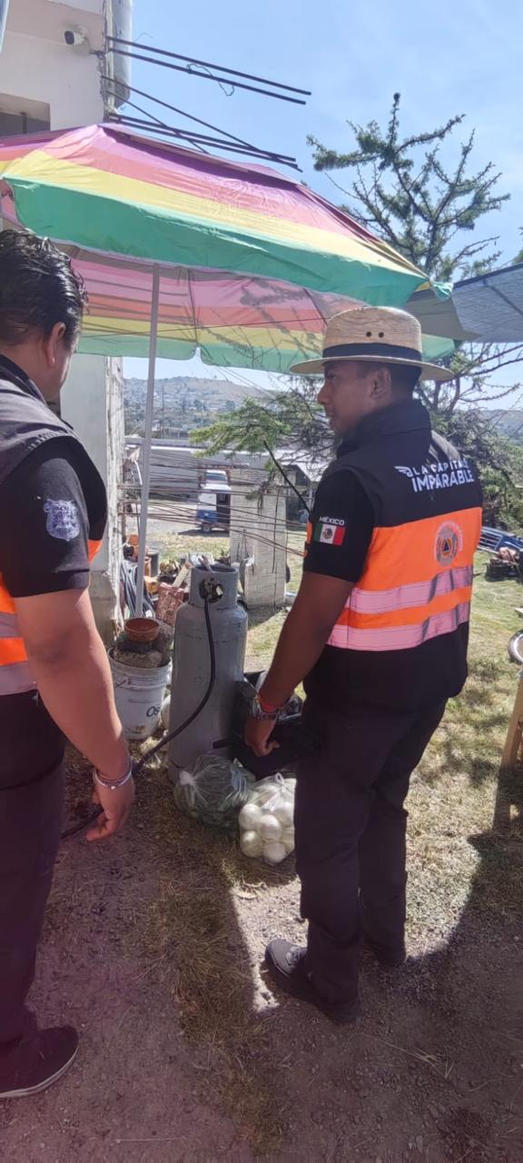 Asimismo, se verificaron los puestos ambulantes donde se expedían alimentos calientes con sistemas de gas, detectaron seis anomalías, las cuales fueron solventadas y corregidas de inmediato. Durante las labores, se atendió un incidente por un enjambre de abejas, donde seis personas resultaron con picaduras y fueron atendidas oportunamente por personal de la Dirección de Protección Civil y Bomberos. El área fue acordonada y controlada para evitar mayores afectaciones.