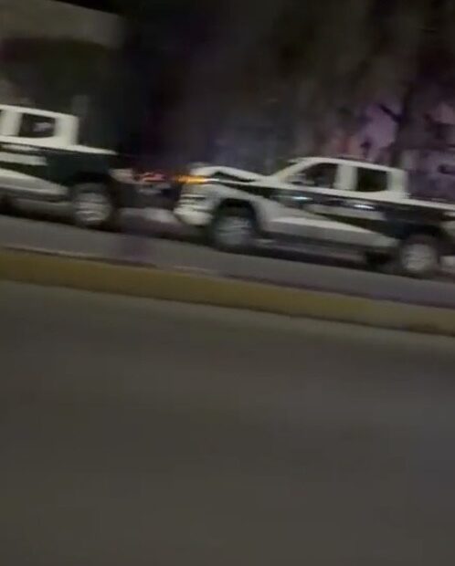 Hasta el momento se desconoce qué originó el percance. No obstante, en las imágenes que circulan se observa que una de las unidades oficiales presenta daños en la parte superior, además de tener el cofre levantado tras el impacto.