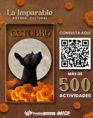El Gobierno de la Ciudad, que preside Pepe Chedraui, a través del Instituto Municipal de Arte y Cultura (IMACP), bajo la dirección de Anel Nochebuena, presenta la agenda cultural del mes de octubre, con más de 500 actividades que celebran el arte, las tradiciones y la riqueza cultural de México en una de las temporadas más significativas del año.