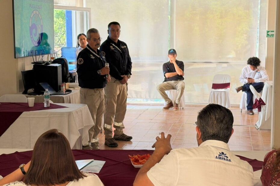 Como parte de las acciones preventivas para garantizar la seguridad de las y los poblanos durante el periodo vacacional de Semana Santa, el Gobierno de Puebla, a través de la Coordinación General de Protección Civil y Gestión del Riesgo de Desastres, sostuvo mesa de trabajo con representantes de balnearios de la región, a fin, de reforzar las medidas de seguridad en estos espacios recreativos.