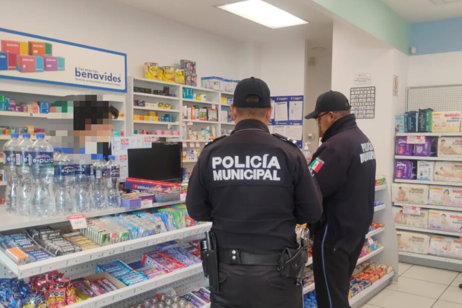 La Dirección de Seguridad Pública Municipal de Apizaco informa que, tras un reporte recibido a través del número de emergencias 911, elementos de la Policía Municipal se trasladaron de inmediato a una sucursal de Farmacias Benavides, donde se reportó un robo.