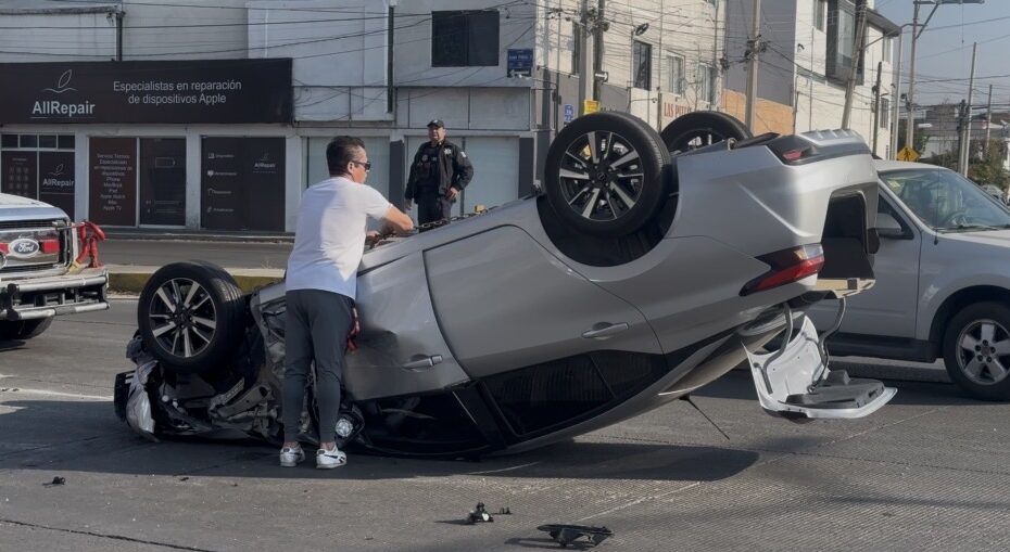 Se registró la volcadura de un automóvil particular sobre Circuito Juan Pablo II y la 27 Sur, antes de llegar a la Vía Atlixcáyotl, en Puebla. De acuerdo con los primeros datos, el conductor de la unidad perdió el control del volante en una curva, presuntamente por manejar a exceso de velocidad.