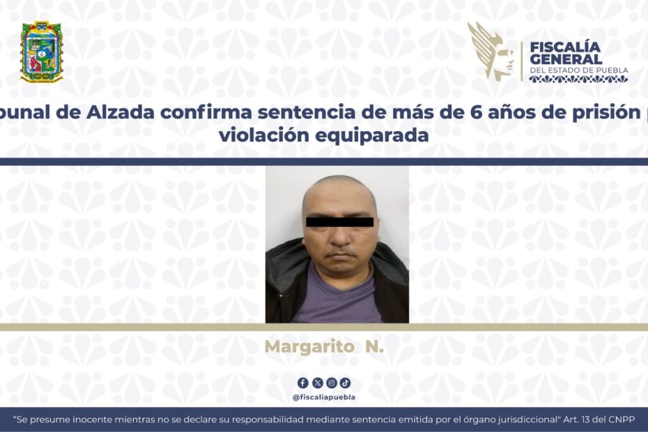 El Tribunal de Alzada ratificó la sentencia dictada contra Margarito N., al confirmar su responsabilidad en el delito de violación equiparada, con base en las pruebas y argumentos presentados por la Fiscalía General del Estado de Puebla.