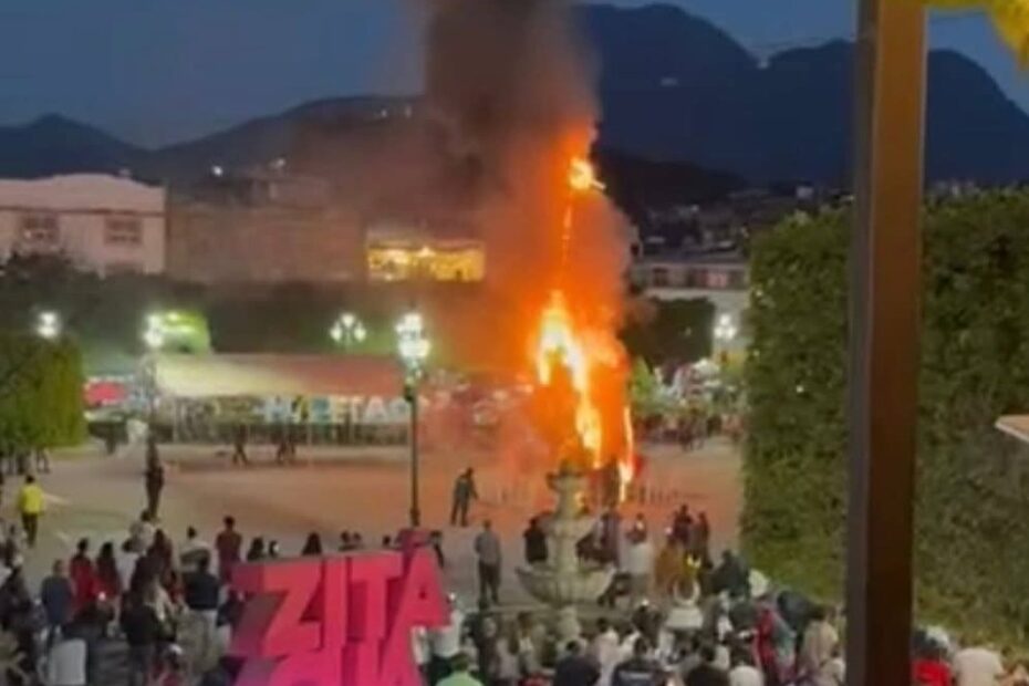 Al no obtener respuesta del presidente municipal, encendieron fuego al árbol navideño instalado en la plaza como acto simbólico de indignación, mientras lanzaban consignas y demandaban que se esclarezca lo ocurrido y se sancione a los responsables.