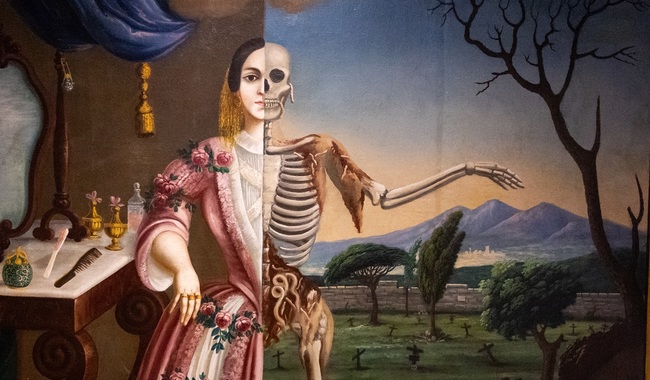 La segunda parada es “Cara a cara con la muerte”, inspirado en el concepto del memento mori –recuerda que te vas a morir–. Reflexiona sobre la universalidad de la muerte, sin distinción de clase, género o condición. “Todo el mundo va por el mismo camino”, afirmó el curador, tras subrayar la conciencia colectiva de lo inevitable.