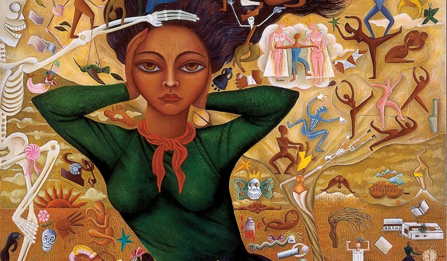 Mujer saliendo del psicoanalista (Podría ser Juliana) (1960), óleo sobre tela, de la artista Remedios Varo (1908-1963). Esta obra icónica del arte surrealista muestra una escena onírica de luminosidad difusa: una mujer recién salida de un consultorio de psicoanálisis. Se resguarda en el MAM gracias a la donación de Walter Gruen y Ana Alexandra Varsoviano en 2002.