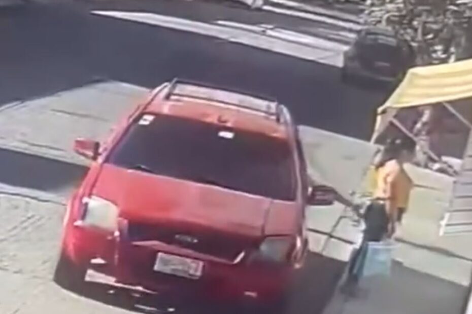 Gracias a la cámara de seguridad de un establecimiento, se puede ver a una mujer que viste blusa de color amarilla y pantalón de mezclilla, estar de pie sobre una banqueta sobre la calle Río Quiotepec esquina con Meza de Anáhuac en la colonia Volcanes, es en un breve momento que aparece en escena una camioneta de color rojo conducida por un hombre que aún no ha sido identificado, y mientras conduce, direcciona su vehículo hacia la acera para poder alcanzar a tocar en la parte trasera de la mujer, la cual reacciona sorprendida y solo alcanza a ver como el vehículo se retira del lugar.