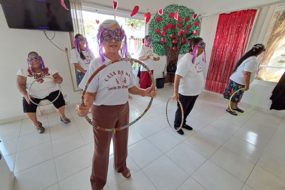 Durante la actividad recreativa, las adultas mayores que asisten a este espacio de cuidado diario participaron con entusiasmo en bailes y dinámicas que llenaron de color y alegría el recinto, fomentando la convivencia y el esparcimiento.