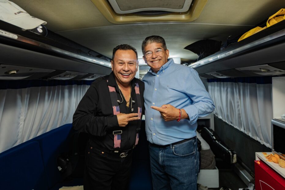 Durante el concierto, el cantante agradeció la invitación del presidente municipal, Alfonso Baca Sevilla, quien también subió al escenario para convivir brevemente con el elenco.