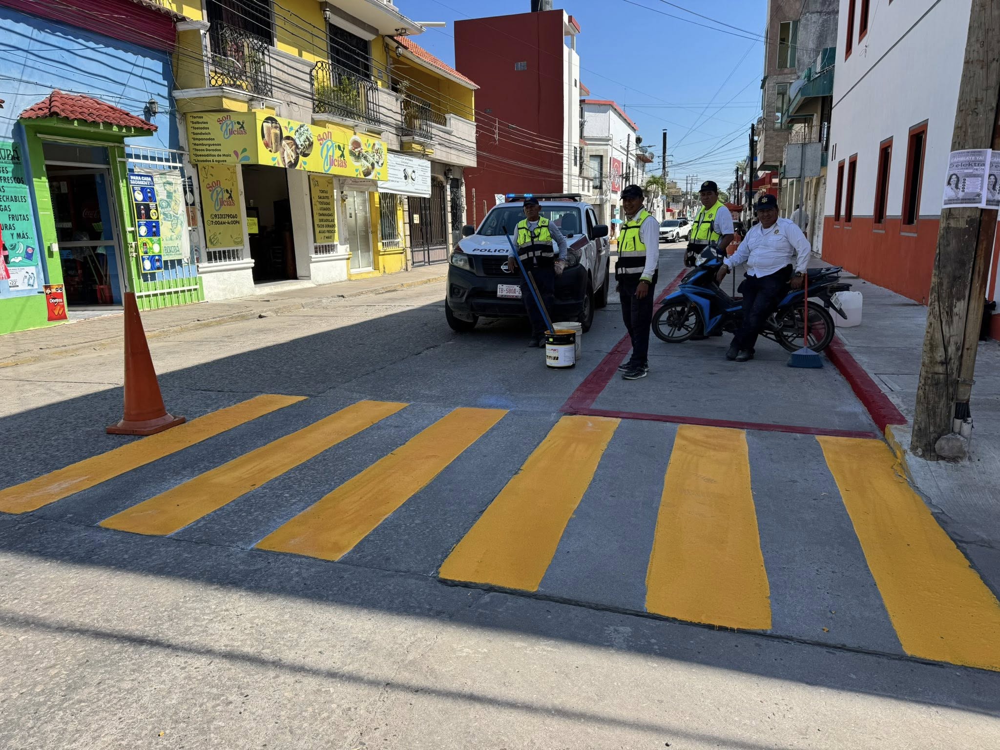 Asimismo, el Ayuntamiento dio a conocer que continúan los trabajos de colocación de pasos de cebra en calles principales del Centro de la ciudad, con el propósito de brindar mayor seguridad tanto a peatones como a conductores.