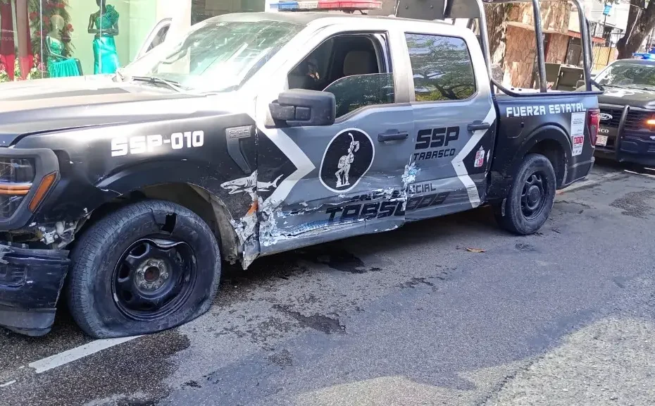 En solo daños materiales quedó un fuerte choque entre un vehículo particular y una camioneta de la Secretaría de Seguridad y Protección Ciudadana, registrado la tarde de este jueves en la avenida Paseo Tabasco y Obrero Mundial.