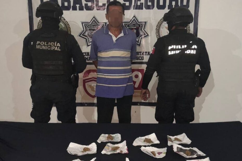 Al detenido, que dijo llamarse Pablo “N”, de 57 años, alias “El Comandante”, se le encontraron –en una bolsa de plástico– 11 envoltorios de papel periódico que en su interior contenían hierba verde con características propias de la marihuana. Por tal motivo, el sujeto fue puesto a disposición del Centro de Procuración de Justicia de Comalcalco por la probable comisión del delito de narcomenudeo.
