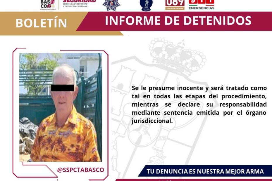 La Secretaría de Seguridad y Protección Ciudadana (SSPC), en coordinación con la Fuerza Interinstitucional de Reacción Táctica (FIRT) Olmeca, detuvo a un masculino por presunta violación a la Ley Federal de Armas de Fuego y Explosivos, durante un operativo realizado en la ranchería Buena Vista, municipio de Centro.