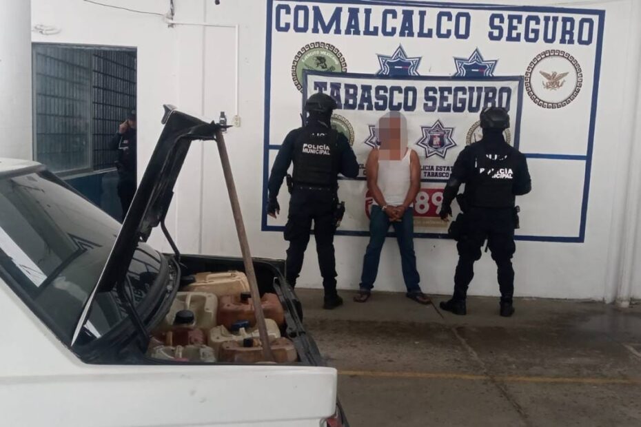 Elementos de la Dirección de Seguridad Pública de Comalcalco detuvieron a un masculino por el presunto traslado ilegal de combustible, durante un recorrido de vigilancia en la cabecera municipal.