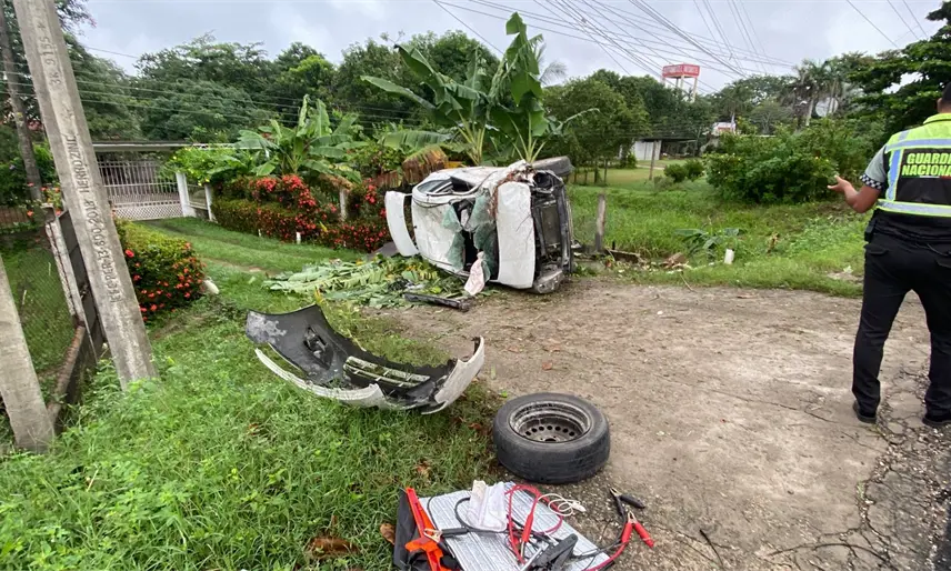 La unidad, un automóvil Nissan Versa, terminó volcada a la entrada de una vivienda, generando la movilización de cuerpos de emergencia. Los ocupantes del vehículo resultaron con lesiones de consideración, por lo que fueron trasladados a un hospital para recibir atención médica.