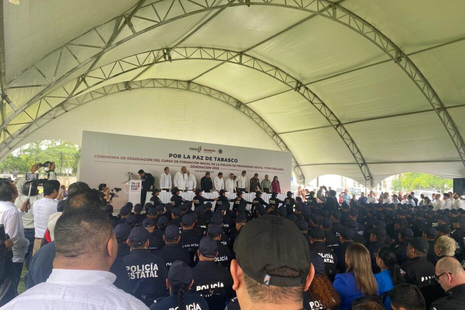 El gobernador Javier May Rodríguez encabezó la ceremonia de clausura de egresados de los cursos de formación para policía de proximidad y penitenciario.
