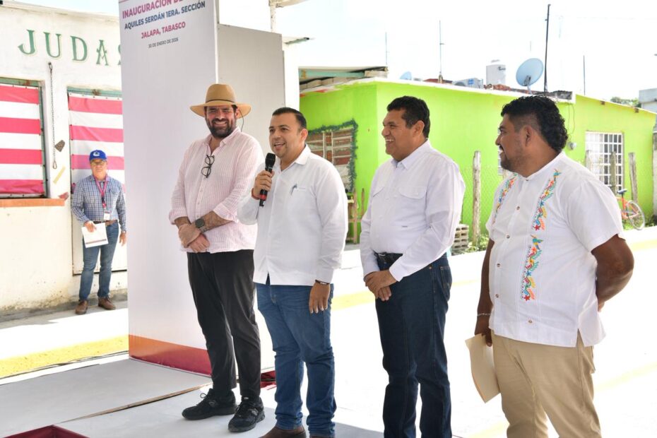 El Gobierno del Estado de Tabasco entregó una obra integral de rehabilitación de calles en el poblado Aquiles Serdán, primera sección, municipio de Jalapa, que incluyó pavimento hidráulico, guarniciones, banquetas, drenaje sanitario, agua potable, alumbrado público y señalización.