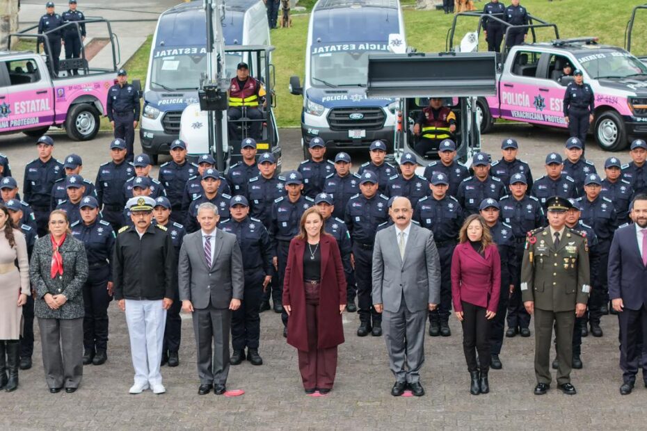 En el marco de la ceremonia, se entregó equipamiento y vehículos para reforzar las capacidades operativas y de respuesta inmediata, consistentes en 378 chalecos balísticos, 609 cascos balísticos, 765 esposas, 94 grilletes, 343 equipos de gas pimienta y toletes PR-24, así como unidades para el programa Veracruzana Protegida, dos camionetas tipo van para la unidad K9 y dos vehículos de trabajo tipo Bobcat.