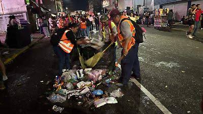 Para hacer frente a esta situación, el Ayuntamiento implementa un operativo especial con brigadas de recolección que avanzan detrás del último carro alegórico, además de cuadrillas de barrido que limpian calles y banquetas.