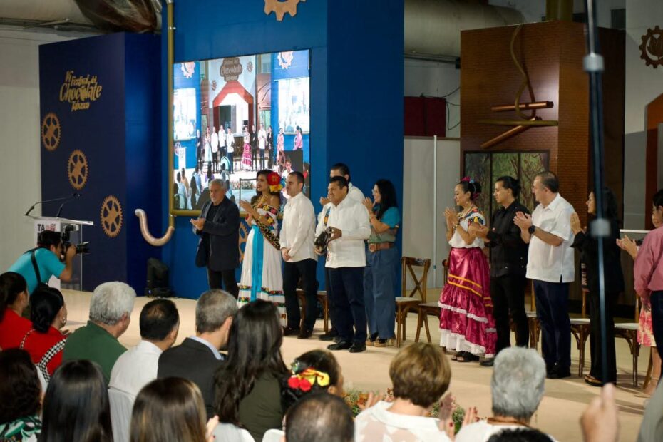 En su mensaje, el gobernador expresó su satisfacción por dar la bienvenida a autoridades federales, estatales y municipales, así como a productoras y productores de cacao, artesanas, artesanos, familias tabasqueñas y visitantes nacionales e internacionales que se suman a esta gran celebración del cacao y el chocolate, tradición que ya forma parte de la identidad cultural de Tabasco.